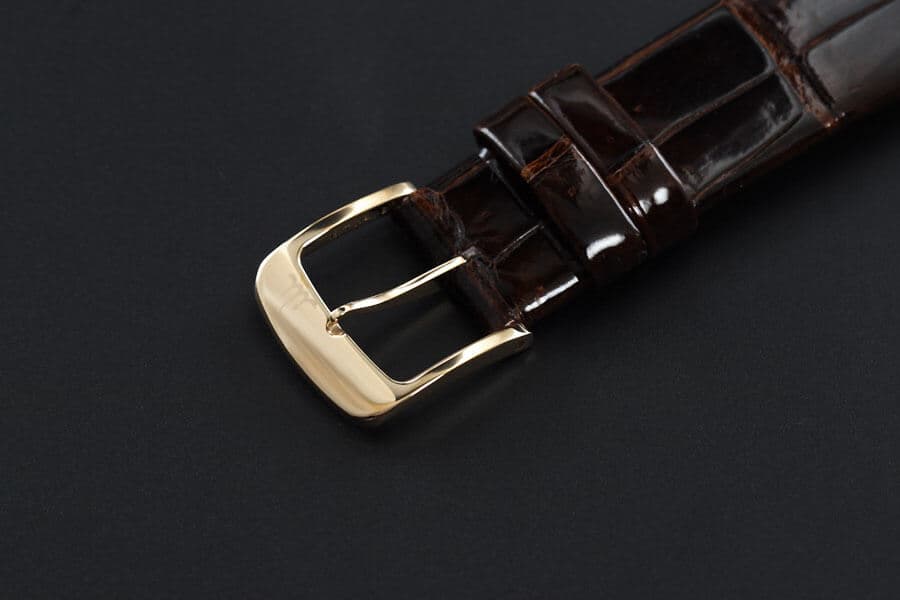 | 仕様 | K18PG ケース クロコダイルバンド ※革バンドは天然素材のため模様が写真とは全て異なります。 サファイアガラス(無反射コーティング) 日常生活防水(3気圧) 耐磁時計 クォーツ キャリバー8J81 平均年差 ±10秒 電池寿命 約3年 厚さ:5.7mm 重さ:40g Made in Japan |